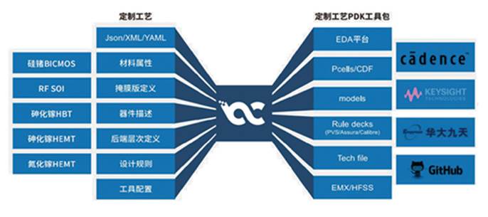 围绕特色工艺器件开发,面向化合物半导体,射频器件,MEMS,光电器件等应用领域,打造电路设计工具包(PDK)快速开发平台,支持业界主流设计EDA平台,兼容国产EDA工具和开源EDA工具。